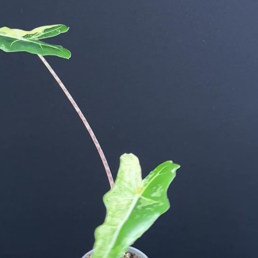 Die Alocasia Sarian 'Albo' ist eine spektakuläre Erscheinung: Sie kombiniert den kräftigen, aufrechten Wuchs der klassischen Sarian mit großflächiger weißer Variegation, die sich wie Marmor über die spitz zulaufenden Blätter zieht. Ihre kräftigen Stiele und die klare Linienführung machen sie zur perfekten Wahl für alle, die sich ein echtes Statement im Dschungel-Setup wünschen – kraftvoll, elegant und absolut selten.
